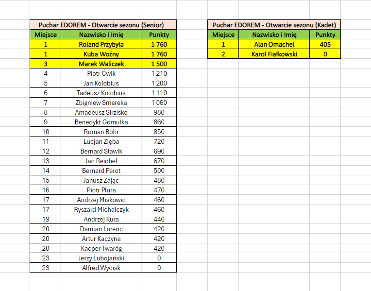 W niedzielne przedpołudnie, 14 kwietnia odbyły się pierwsze tegoroczne zawody wędkarskie, wliczane do cyklu Grand Prix Koła. Łącznie 26 uczestników (24 seniorów i 2 kadetów U-15) rywalizowało na wodzie nr 604 Łęg (zbiornik "Duża woda"). Zawody zakończyły się w nietypowy sposób, gdyż ex aequo na pierwszym miejscu zakończyli je Roland Przybyła i Kuba Woźny, którzy osiągnęli wynik 1 760 punktów. Na trzecim stopniu podium znalazł się Marek Waliczek, który uzyskał wynik 1 500 punktów. W kategorii Kadetów U-15 zwyciężył Alan Omachel z wynikiem 405 punktów. Pełne wyniki dostępne w załączniku.